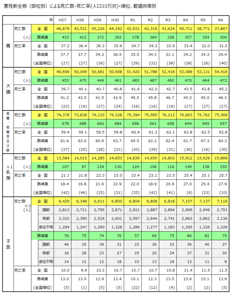 ※2 子宮の死亡数については人口動態調査 保管統計表 都道府県編 死亡・死因 第1表