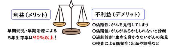 がん検診には利益(メリット)だけでなく、不利益(デメリット)もあります。